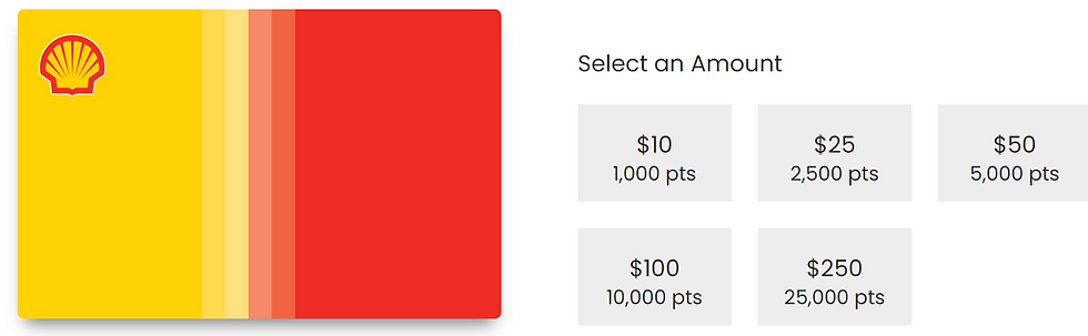 Some gift cards on the portal do provide the expected value of 1 cent per point and could be considered if the primary redemption options don't appeal to you. An example of this would be Shell gift cards: